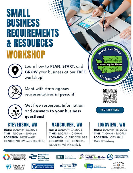 Come hear from State agency representatives speak about the requirements and resources for Small Business Development right here in Skamania County.